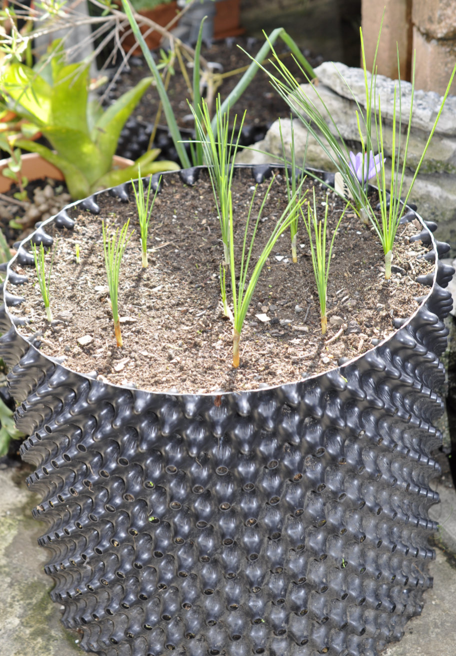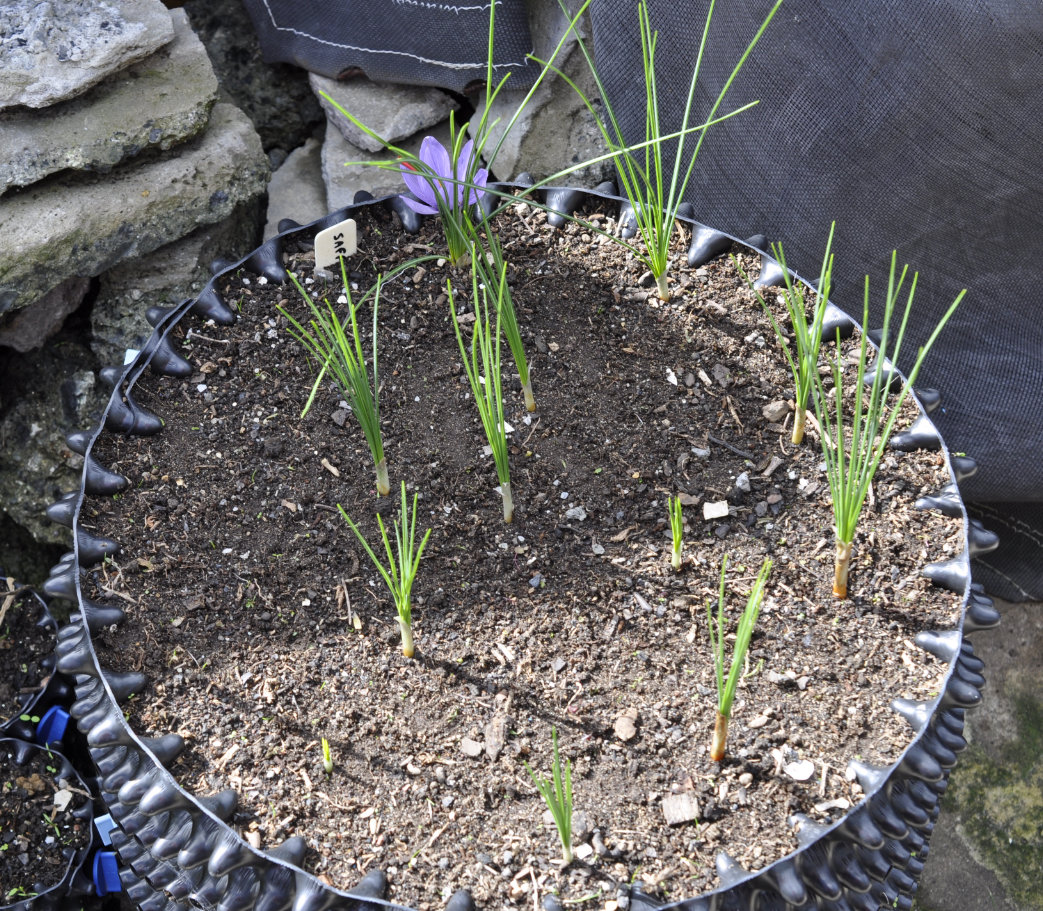 I like the Air-Pot for saffron as they provide the ideal growing environment of drainage and aeration which saffron needs, as well as makes the collecting of corms at the end of the season much easier and with zero damage, as you’ll see.