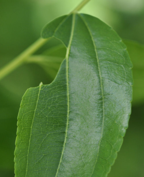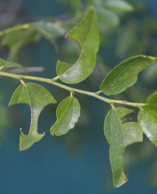 Australian leafcutter bee species range from 6 – 15 mm, and maybe the species that visit are towards the smaller end of the scale if it’s these small and tender leaves they favour. Certainly finding evidence of leafcutter bee activity on the larger, thicker leaves of jujube trees was much harder, but I found this Chico leaf: