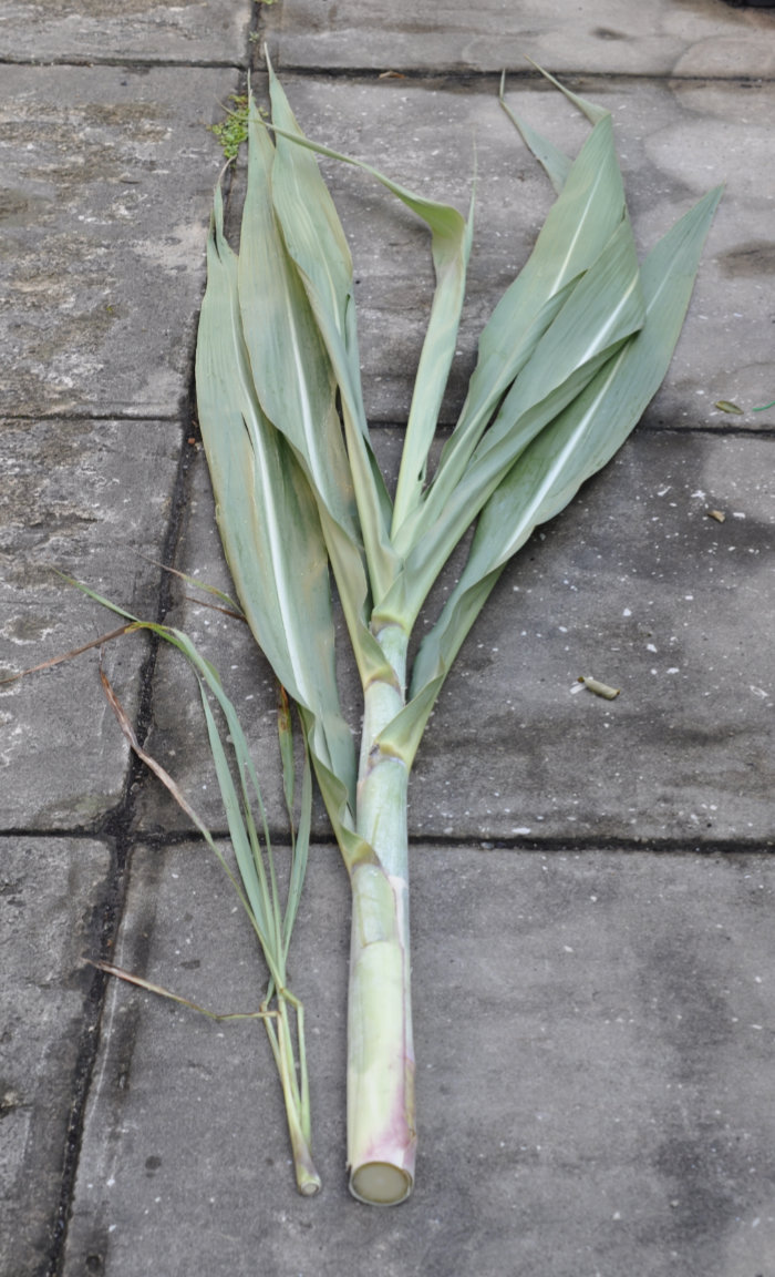 The other day I lopped the top off some sugarcane (Saccharum sp.) for a customer and was taken by how similar to lemongrass (Cymbopogon citratus) the cross-section looked.