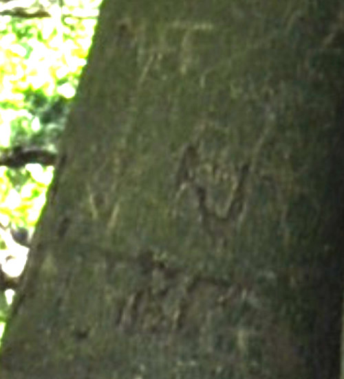 Sadly, idiots just have to deface things, and many of the trees, including this one, are covered in this kind of thing: