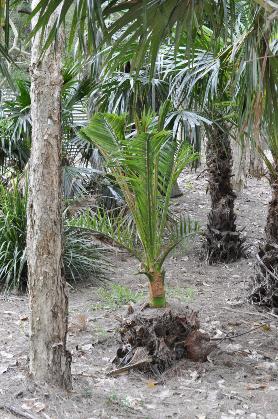 I’m no expert on palms, but based on the locale (outside Wollongong Uni and across from the Wollongong Botanic Garden) and the small cluster of monospecies this one was in the midst of, I shall tentatively identify it as the Australian cabbage-tree palm, Livistona australis. Please correct me if I’m wrong!